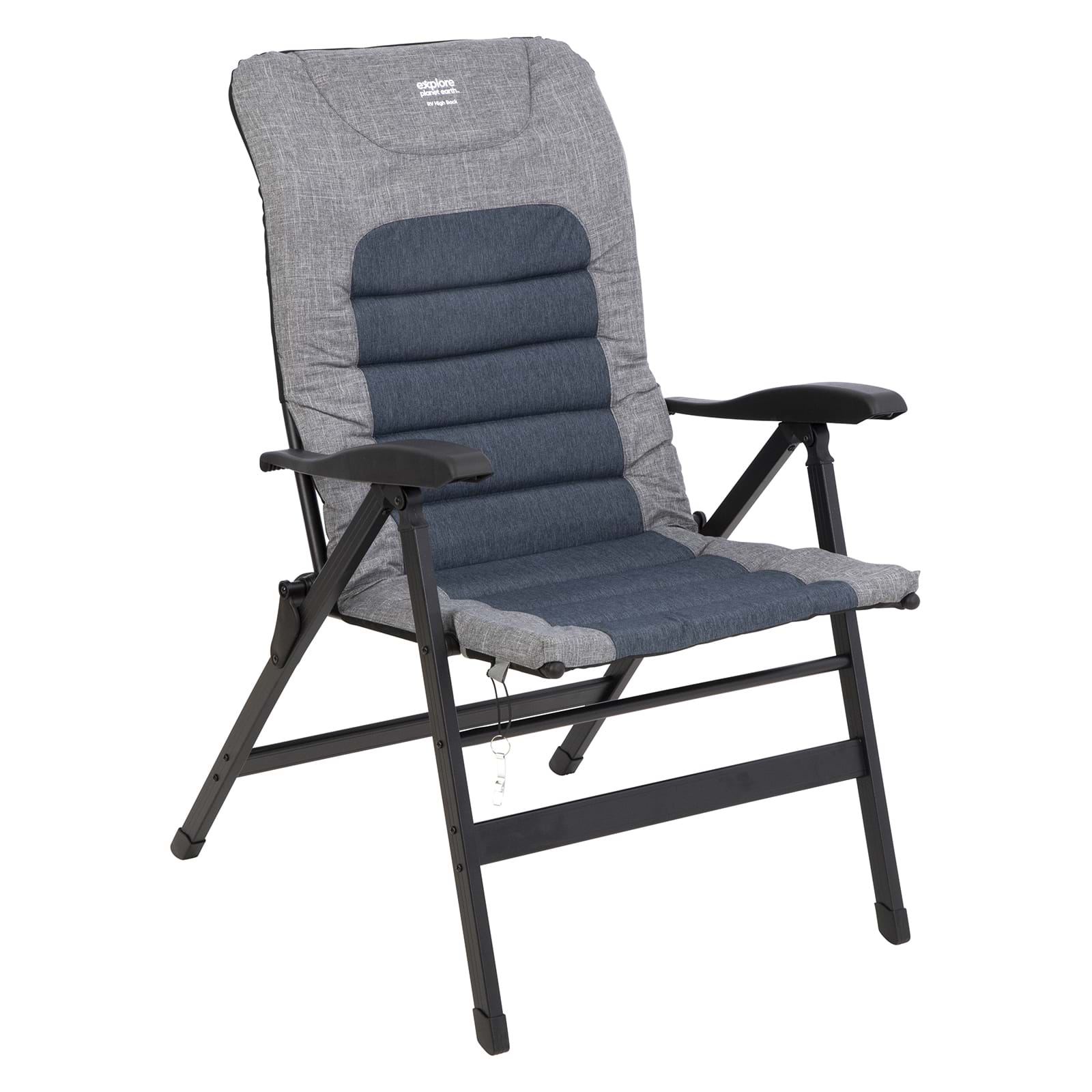 The Explore Planet Earth RV High Back Chair allows you to take the comfort of your own home out into the great outdoors. Featuring a seven position adjustable arm rest so you can unwind in comfort and it folds flat for easy storage and comes complete with carry bag.