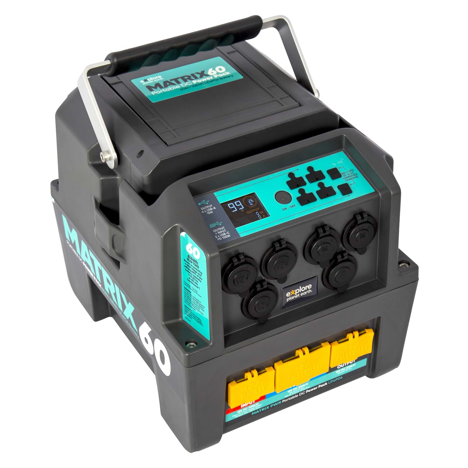 The MATRIX 60 provides 60 amp-hours of battery capacity or 786 watt-hours of usable power. Perfect for longer getaways to power your 12 volt appliances including lights, portable fridges or via USB-A or USB-C for all your mobile devices and laptops.