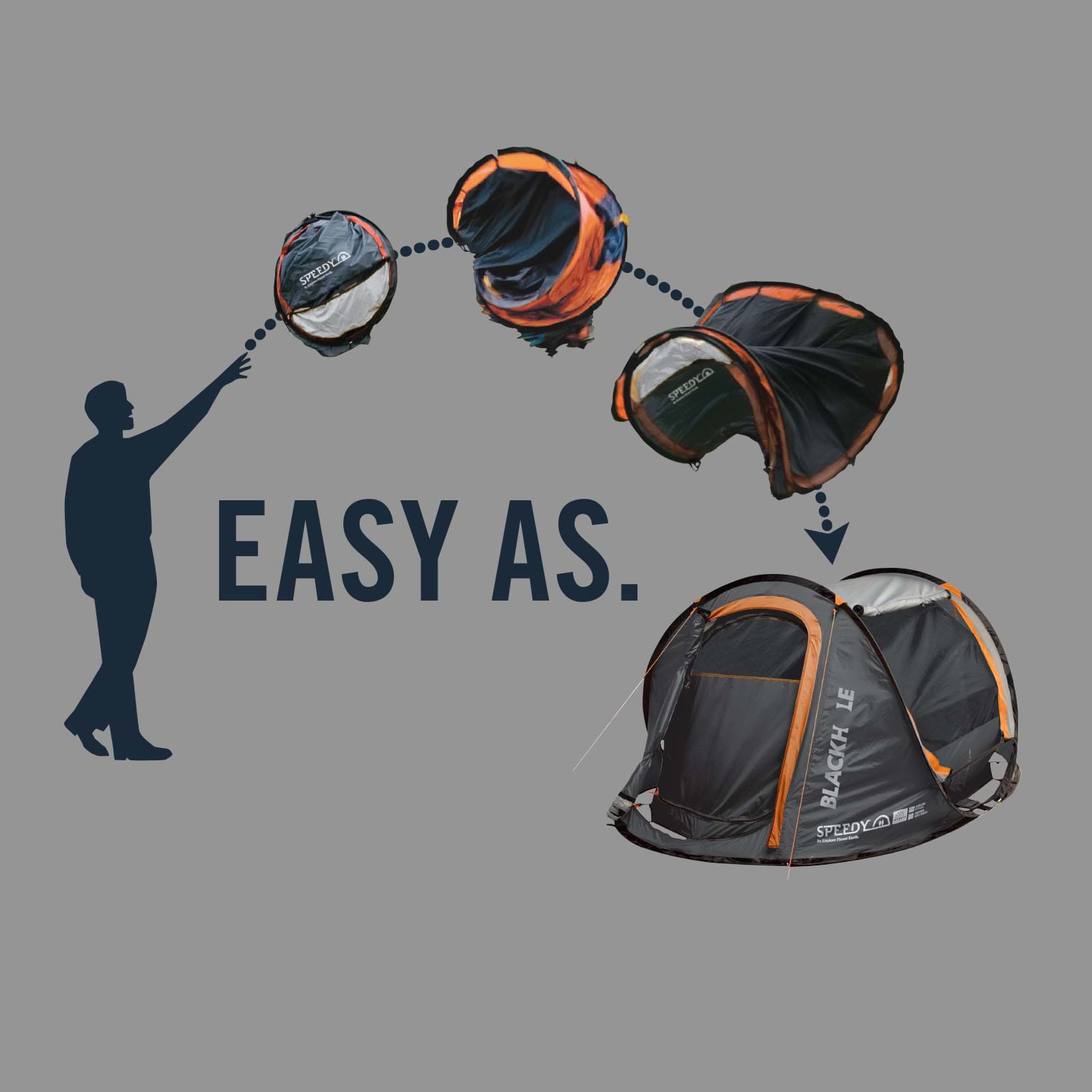 Introducing the Speedy Blackhole 4 person pop up camping tent, same great speedy tent but you can now sleep longer and cooler thanks to the Blackhole feature…black backed fly fabric and black inner cuts out those early morning sunrises and keeps the tent cooler throughout the day.